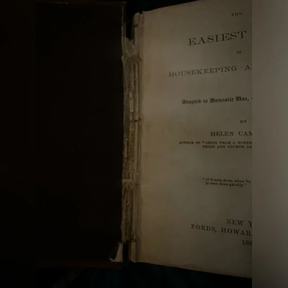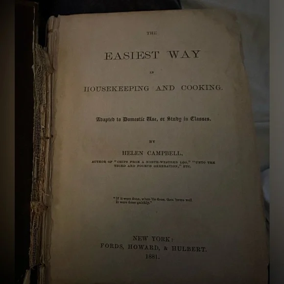 Antique Book The Easiest Way in Housekeeping and Cooking by Helen Campbell 1…