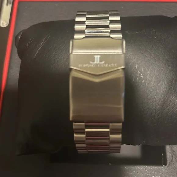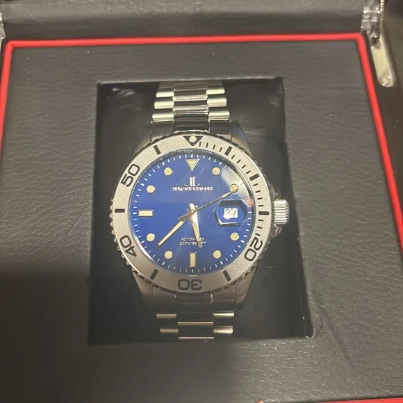 Jerome Lemar Automatic Watch,44mm, water resistant. Blue dial and illuminated markers.Has date displayBox and international warranty card Included. Like new